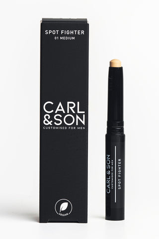 Spot Fighter är en hybrid mellan hudvård och makeup som lugnar, behandlar och döljer finnar och ojämnheter. För att undvika att röra finnarna rekommenderar vi att använd makeupsvampen för att jobba ut produkten.